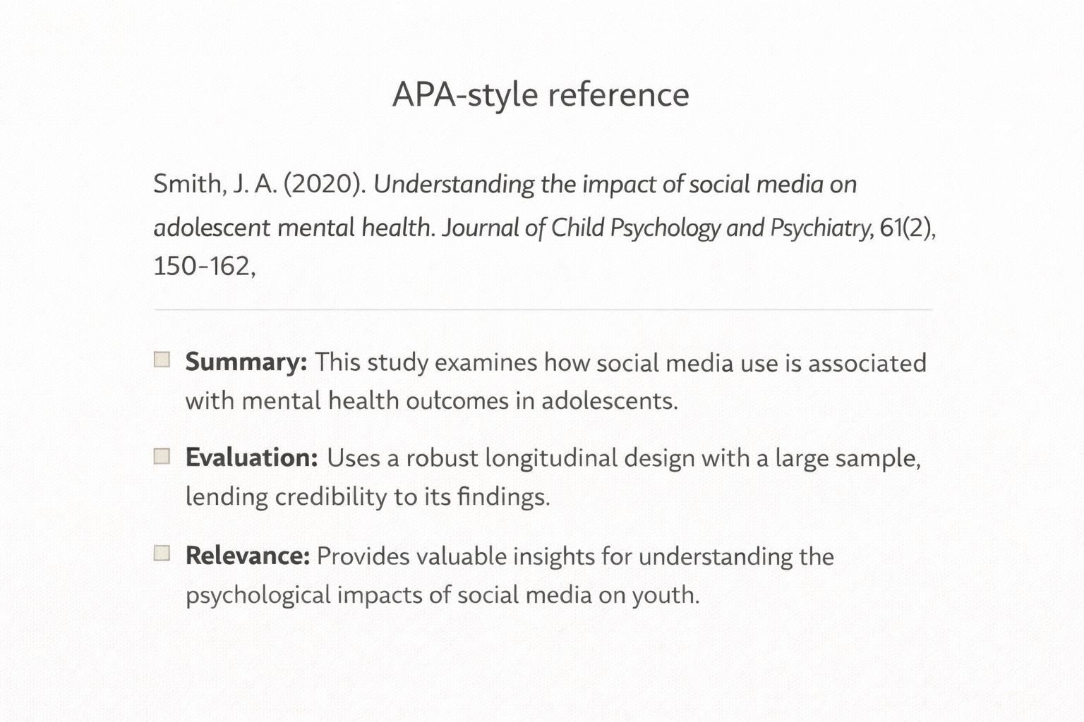 Well-written annotations make it easier to identify key themes, methodological patterns, and gaps in the literature.